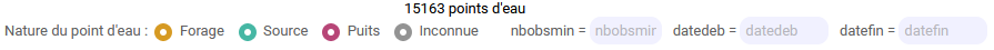 La ligne de légende permet également de filtrer l'affichage des points d'eau selon 3 autres critères :